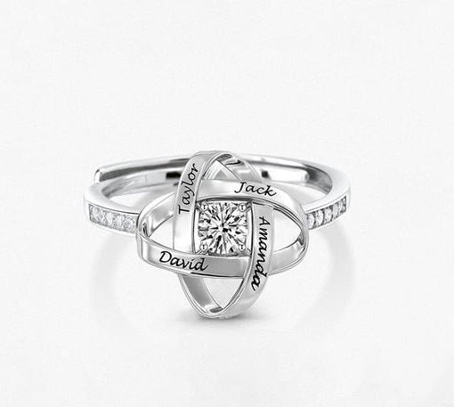 Personalized Clover Ring Custom Engravable 4 Names Copper Open Band for Gift