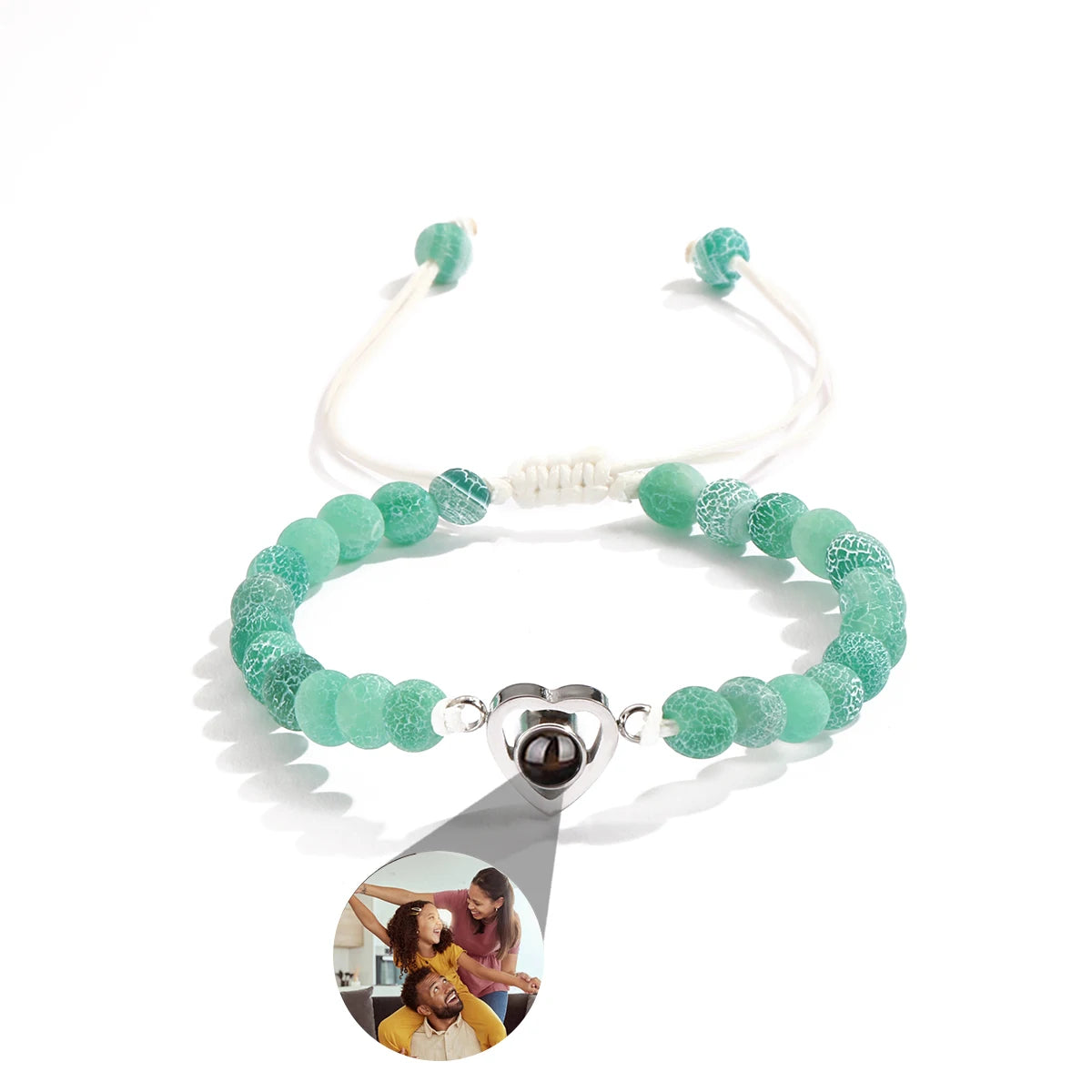 Personalized Custom Photo Projection Bracelet Colorful Bead Chain Heart Pendant Women's Bracelet Anniversary Gifts Jewelry